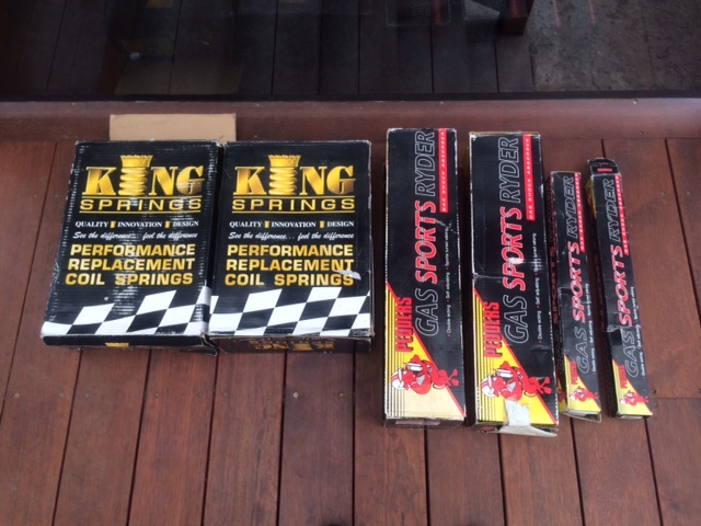 PRICE DROP Clearing out the shed and finally decided to part with my suspension, as i have retired the old falcon for a while. This is a complete set purchased from Pedders, and is all brand new and never been installed or opened. Part Numbers are as follows; King Springs - KFFL-26 (FRONT) - KFRL-27SL (REAR) Pedders Gas Sports Ryder gas shock absorbers - GSR9918L - GSR9918R - GSR9080 (x 2) (front and rear shocks) If i interpret it correctly, this lot is suitable for an EA-EL series falcon/fairlane (6 Cylinder). Up to you lot to figure out if it fits your needs though As mentioned previously, these are brand new and have never been installed. Price to buy all these brand new was around $1300 mark, however ill let these go for around $350, need the space to make way for new toys Cash on Pickup is the preferred method, from East/SouthEast suburbs of Melbourne. Feel free to PM if theres any questions. Cheers, Peter Attachment: Attachment: Attachment: Attachment: