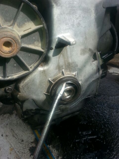 Ok crankshaft oil seal, mine wasn't too bad if I was replacing it with a good used harmonic balancer you maybe could get away with leaving old one in-but better to change it anyway, so new balancer needs a new seal, I use a large screwdriver but wrap the tip up with duct tape so theres no chance of damaging the crankshaft snout or the seat for the seal.