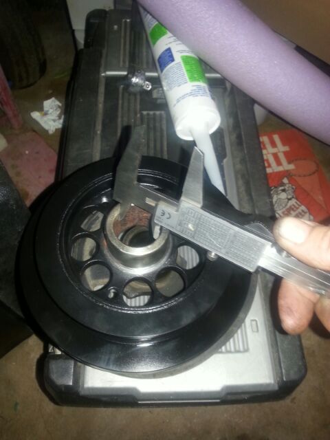 Ok the new balancer needs to be cleaned up for installation-but before that you need to check a couple of things,even with a OEM balancer you need to check that there is no difference in the ID of the balancer where if fits on the crankshaft snout (I've added a pic of the installation instructions explaining the bore diameter and Interference) but IMO it is not necessary to go this far in a street application, So in my case the ID of the balancer was a hair over 32mm in both the OEM & the underdrive (checking right around on both with no variation)will still give maximum vibration dampening, so I gave the ID a go over with fine emery paper including where the key engages then cleaned both OD & ID of the balancer with prepsol (just like a new disc rotor or a flywheel the unpainted parts on the underdrive are sprayed with a sealant for preventing rust during shipping and storage-this must be removed), the crankshaft snout and the ID of the balancer needs to be lubricated with oil.