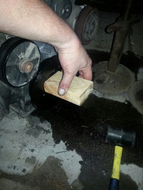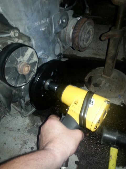 Ok with snout and underdrive oiled you can fit the balancer on the snout squarely as possible, I then use the same piece of wood I used for the seal to tap the balancer in (turning the wood as you go to prevent it kinking & and keeping it go on straight) once its over half way on (after bolt and washer is cleaned up use a bit of anti seize on the bolt and tighten up by hand) I use the rattle gun to take it the rest of the way, then you need to torque to 125 Nm
