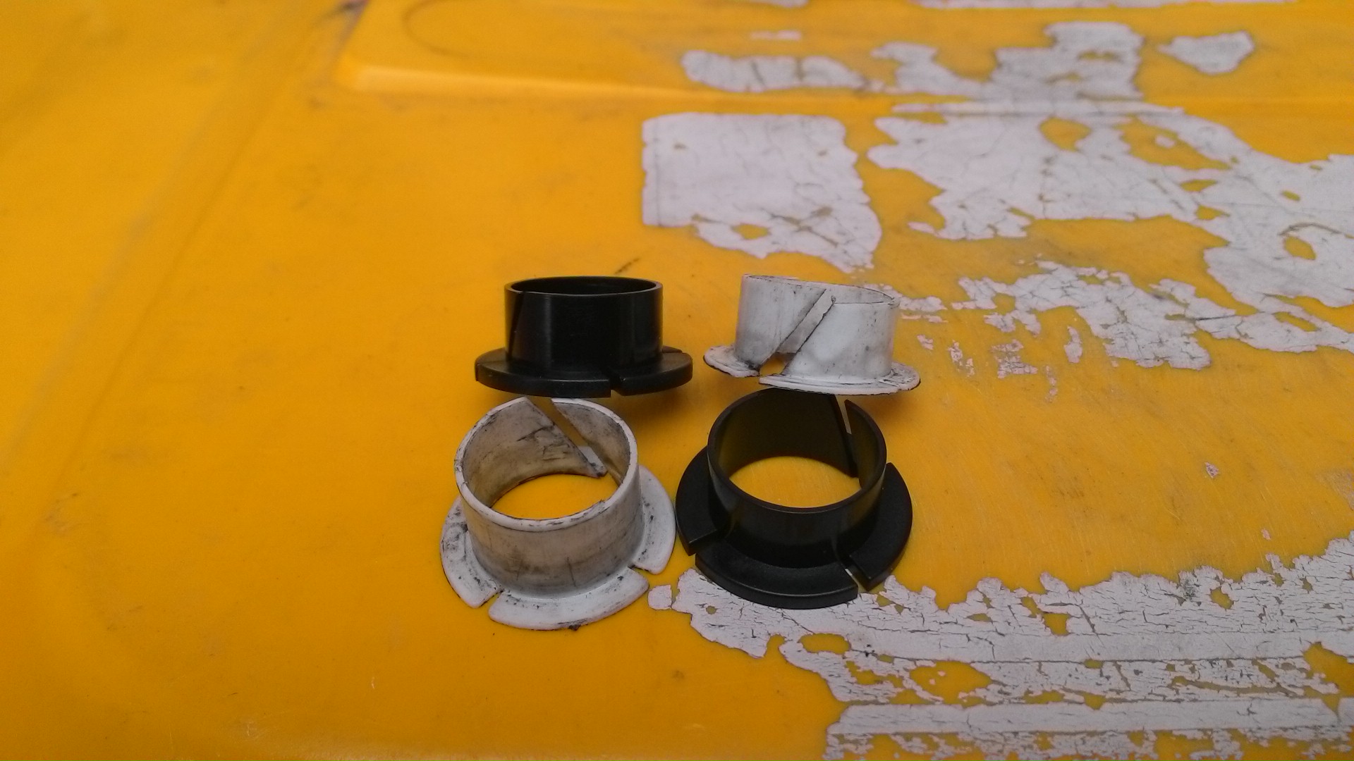 Turns out the bushes I bought were crap. I have asked for a refund. Got a set from Rare Spares and they fit. Compare the altered white rubbish ones with the Rare Spares ones. When I got the white ones they were about twice the thickness as in the pic, I had to cut them down. The joint I got the white ones from actually has a picture of black ones on their website. I don't know what they fit the ones they sold me to, they are a well know restoration company in Melbourne and they are on TV.