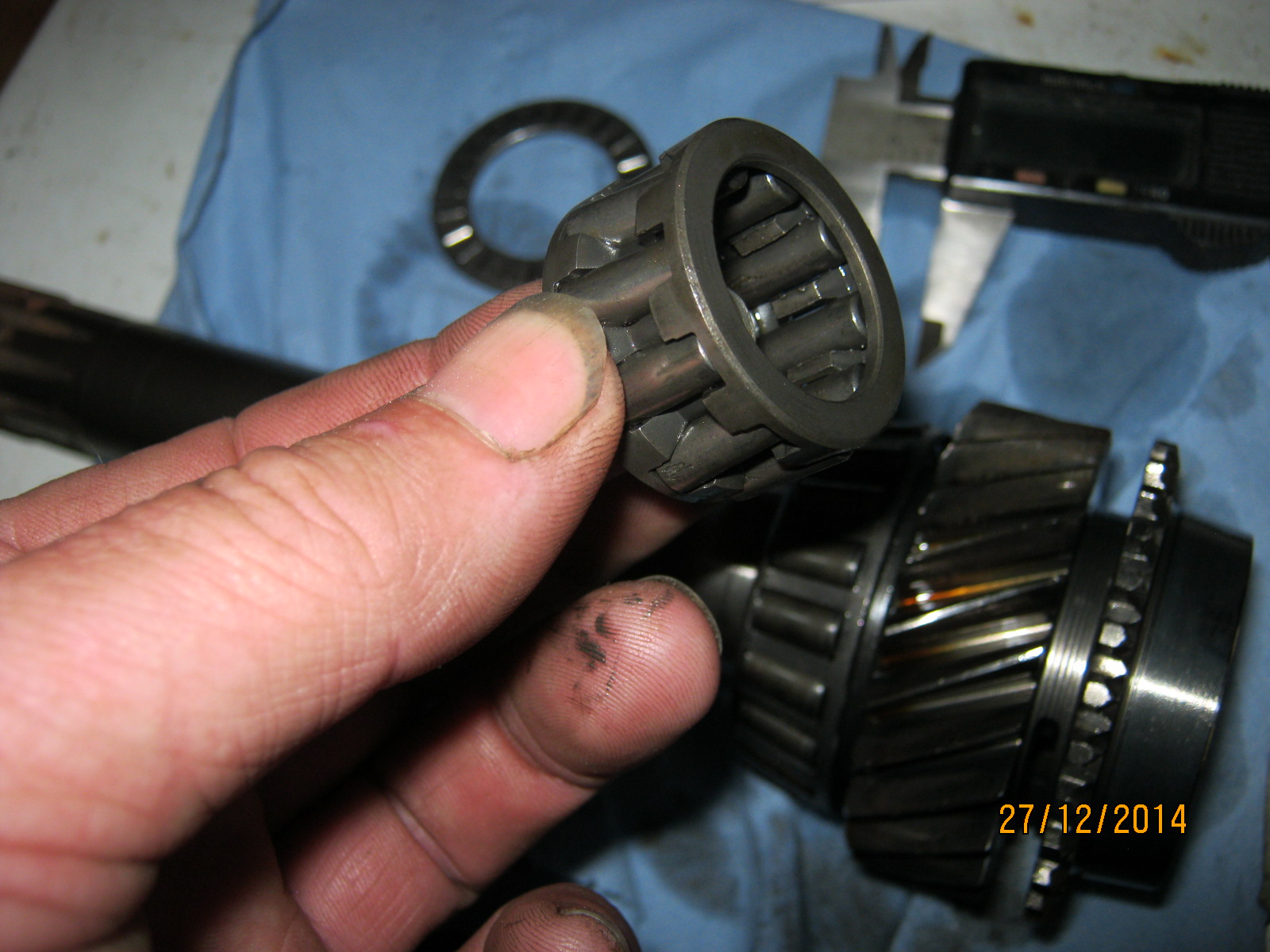 OK, I have a VN commodore T5 gearbox that I was planning on using in a re-power. I was expecting to swap the input shaft for a different length with the same tooth count (I initially thought of using an ED I6 Falcon input shaft). When I removed the VN input shaft I found that it runs a weird caged roller bearing between input and main shafts. This is not the "Cobra" tapered roller bearing like the ED I6 Falcon runs, but a parallel caged bearing. There are 10 rollers in a plastic cage. The plastic cage appears to be a simple containment mechanism rather than providing any bearing support function. I have attached a picture The VN input shaft ID where the caged bearing runs is the same as a US input shaft. The rollers in the VN T5 caged bearing have the same OD as the 15 individual rollers. Question. Can I upgrade the VN T5 to using the 15 individual rollers and a run a US input shaft designed to run these bearings? From the measurements above, it seems probable that I can. And the extra rollers should increase torque capacity of the T5. But always good to get some feedback from the real gearbox specialists on the forum