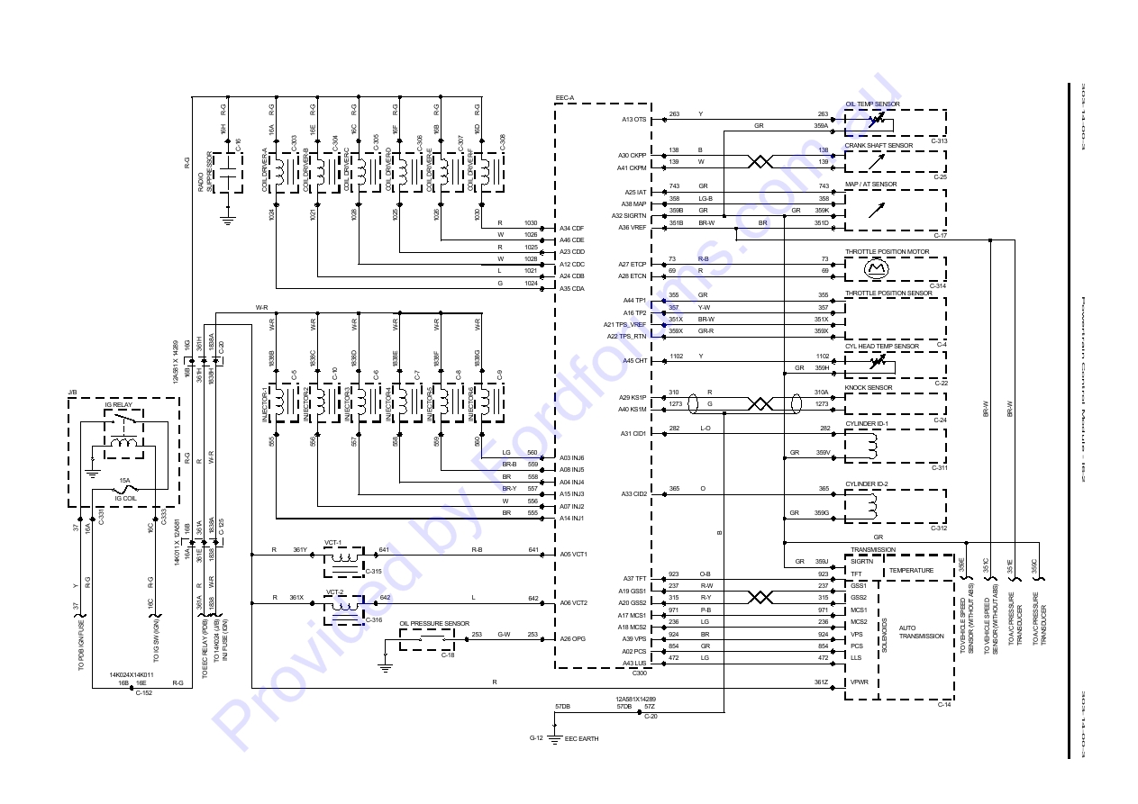 This red/green wire must be getting it's feed from a relay or at least a fuse though the ignition circuit, but I've not found the right one.. there are no blown fuses and I swapped all relays with those out of a BA that ran fine.