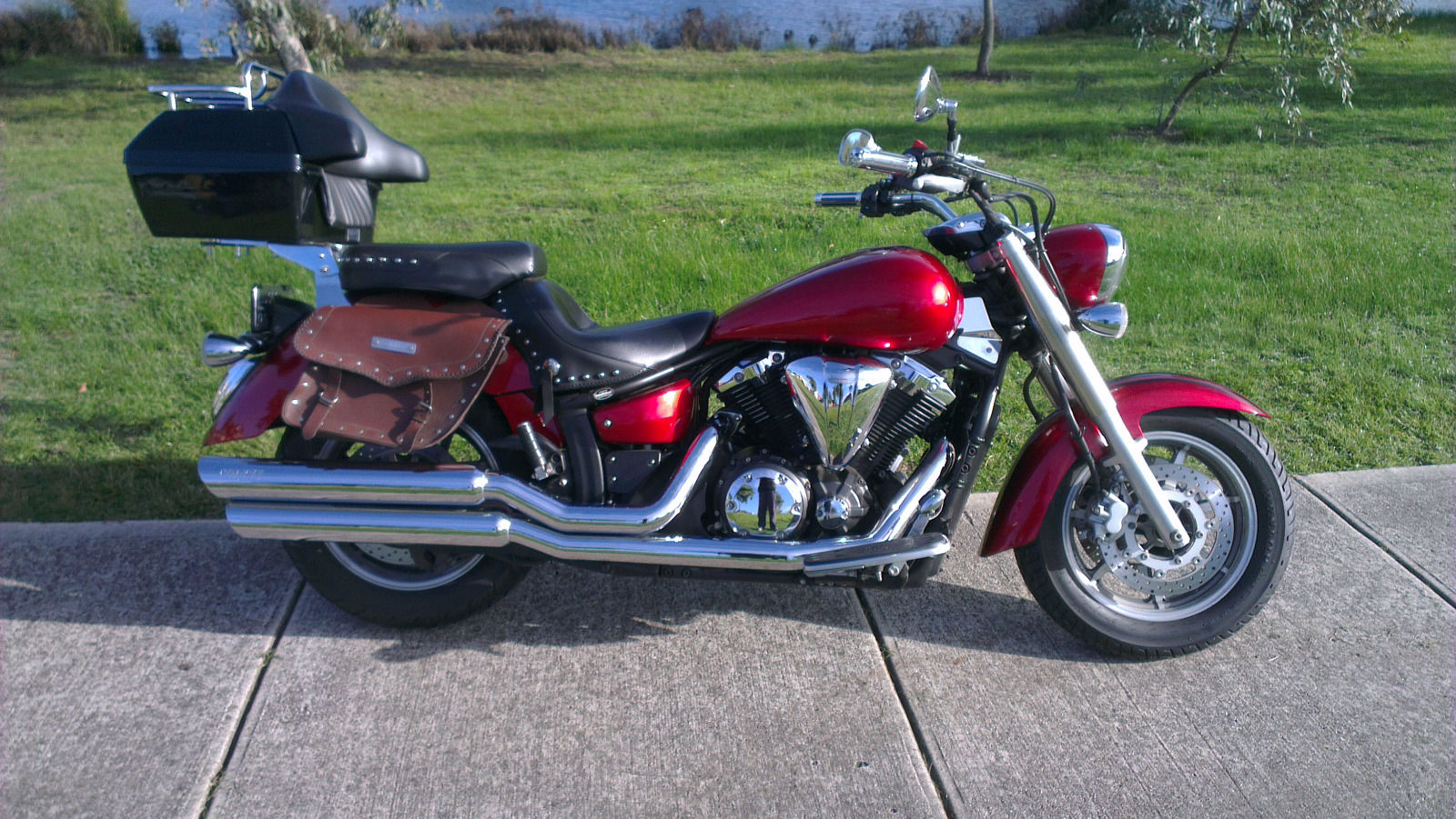 This bike was originally bought from Gladstone Yamaha Motorcycles and has been continued to be serviced there by the original owner. I’ve had it serviced once by Evolution Yamaha in Epping. Full service history since new. It only has a small 11,093 km’s since brand new. Original owner is/was like me, Only rides it on nice days off and not in the rain. REALLY loud Vance and Hines pipes fitted. I love them because not only do they sound awesome, loud pipes save lives. If it’s too loud for you (your too old lol) it comes with a second set of Vance and Hines baffles that still have a really nice burble but are not as loud, your choice. BRAND NEW Mustang tourer drivers and pillion seat imported from the USA for $956 AUS. Comfiest seat, kicks a*** over the factory one. Has a Highway hawk rear taillight cover. Recently installed BARON Star Bar handle bars from the USA. Gives a more natural riding position and shoulders aren’t sore as with the factory ones. Has a set of Enoble brown studded leather saddlebags in fantastic condition. Has a Kuraykun rear foot brake cover. Also has a rear topbox installed onto a highway hawk luggage rack onto the Yamaha factory seat bracket, Great for touring, holds two full face helmets and is lockable. Holds heaps of luggage along with the side bags. Bike has a 143 DECIBEL motorcycle airhorn hidden under the chrome cover on the left side, no more not being heard from the piss weak factory horn of meep meep like a barina. Aftermarket handgrips with a skull on the end. Recently new Dunlop 404 front. Currently looking around the house and if i find them will come with forward extension controls if you are really tall. All original factory hardware included, exhaust, seats bars, bar ends etc. Comes with 3 sets of keys including RED MASTER, books etc. There are two things that can be picked up on the bike. 1: is a small scratch on the front wheel guard closest to the radiator. 2.Has a scratch on the upper belt guard. Not trying to detract from a sale, just being honest. I really don’t won’t to sell this bike and absolutely love it as is evident from the condition and the extras I have put on since factory, I was going to keep this for a long time, but due to a posting overseas, circumstances force me to sell it. This does not mean I am desperate and need money urgently, but need to sell by end of this year. My Car and My wife’s car also for sale if interested. The price is firm and very fair. Will Come with RWC and a nice 4 months registration. Check out km's, colour, features and year model and compare on bikesales out there. There is none out there with this amount of k's, owner history, service history, and features anyway near this advertised price BIG and POWERFUL Bike and is not for the inexperienced rider. NO JOYRIDERS. Welcome to test ride but collateral of equivalent value will left when test riding. If you purchase on paypal, buyer is to pay paypal fees Bike is advertised elsewhere, add will be removed from ebay if sold on other websites and media. $7500 for FM'ers. Any queries, give me a bell on 0412 384 639 Cheers, Andrew
