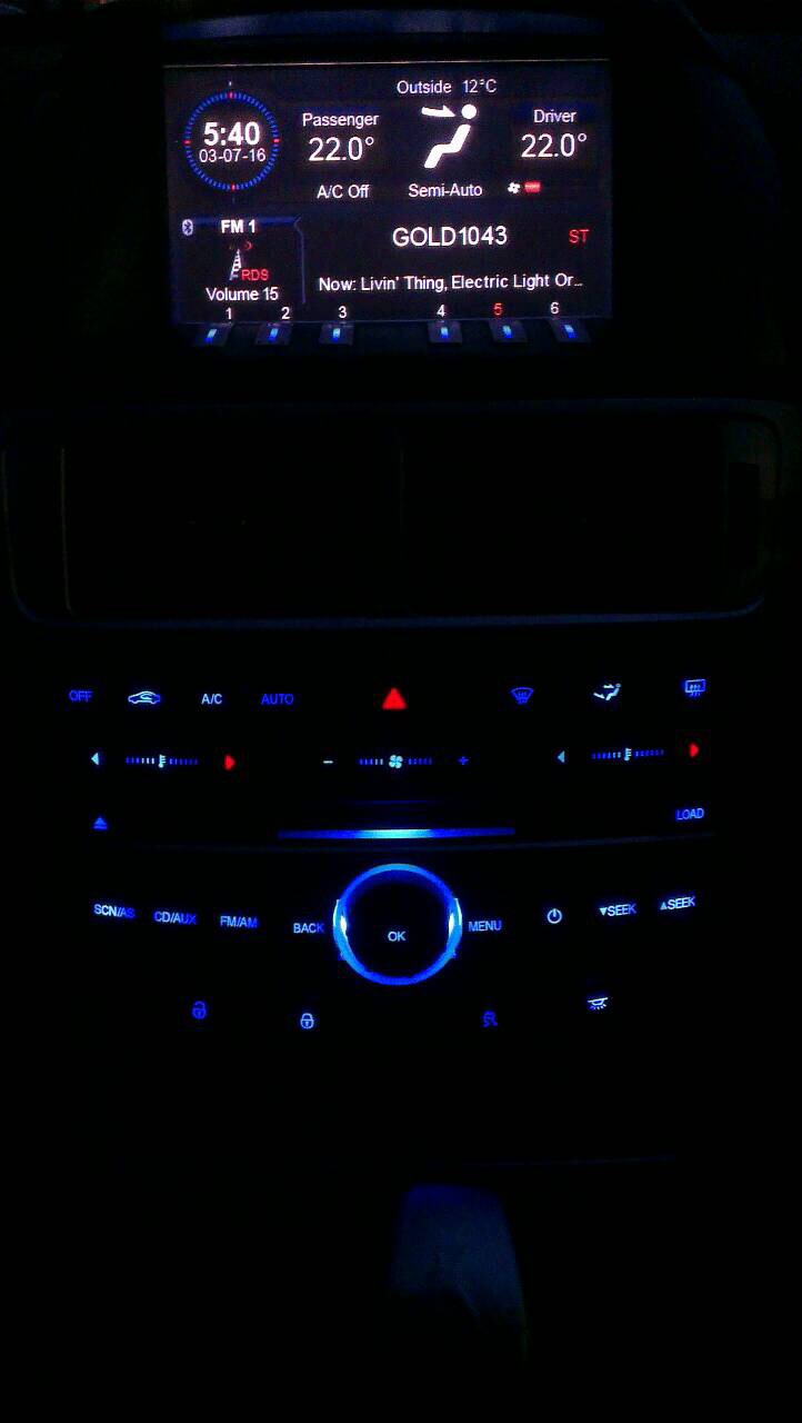 FULL COLOUR Screen and Dual Zone Climate ICC from an F6 310. Sooo much better than any normal ICC. The car itself is SINGLE ZONE CLIMATE, if you adjust the temperature on the ICC BOTH temps will change at the same time. I haven’t got around to it yet but I can have it converted to DUAL ZONE CLIMATE from a FORD MECHANIC for $500. ICC has the nice blue LED lighting and has the 6 stack MP3 player in it. Also has LOADS of other customisable features that normal ones don’t.