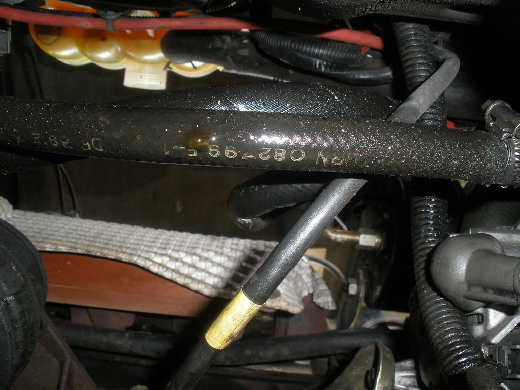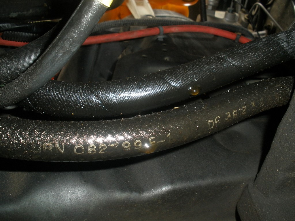 I've been noticing of late there has been a wet and oily patch on the ground. It was detected on a wooden board I had placed. I crept under the vehicle and noticed drops of discoloured oil on both steering hoses. I had the power steering hose replaced in November last year as well as the steering pump. I traced the leak back to the high pressure hose, it appears to come up from the part that has been crimped, that is between the metal pipe that goes into / over the rubber hose and the metal sock. Can the high pressure hose clamp be retighten? Here's couple of views of the leak found on hose. Cheers