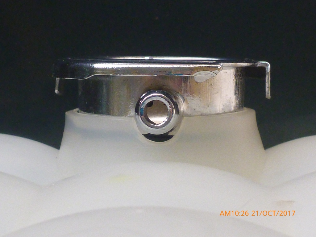 All hose connections were tight and no water seen leaking, a good sign. After having the water rise in temperature I noticed a few bubbles of air coming through between the cap holder and filler. I've attached two pics. Is this filler a faulty manufacture? I put the old one back on and have no issues with it apart from the crud.