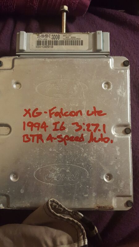 {USERNAME} wrote: What ecu can I get for a 1993 XG ute ? would a same year or ea onwards mpefi ecu be ok? as not many XG falcons around my area (wreckers that is) I have one here I just removed from my XG 94 auto. If you want to pay postage you can have it- shoot me a pm. Cheers Johnny.