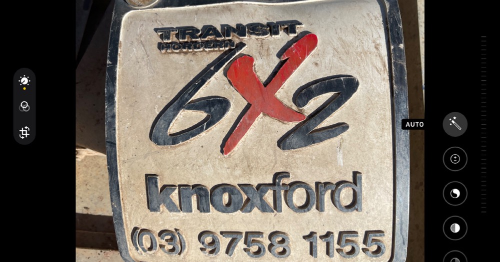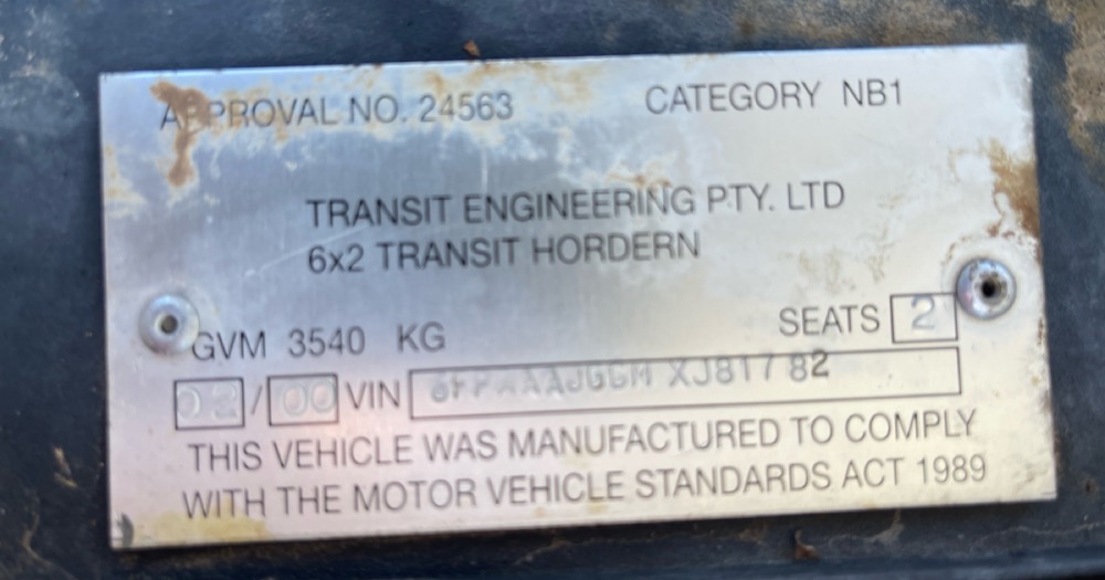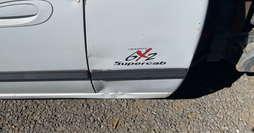 On the side it has a sticker 6x2 transit, it also has 6x2 transit on the mud flaps with Knox ford.