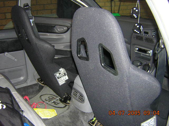 EDIT: here's some photos of some Cobra Trphies that me and a mate fitted to my EF one evenign after my drivers seat broke. They're just on loan to me till I get some nicer sports seats (these are full on race seats - not a lot of padding and fixed back - I don't like em but at least I can still drive the car this way).