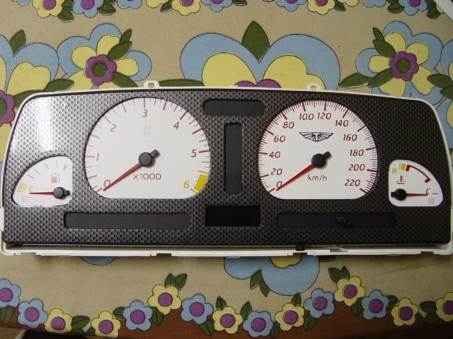 Ok, Fitted the white dials, the red needles, and also covered the fascia in carbon fibre.