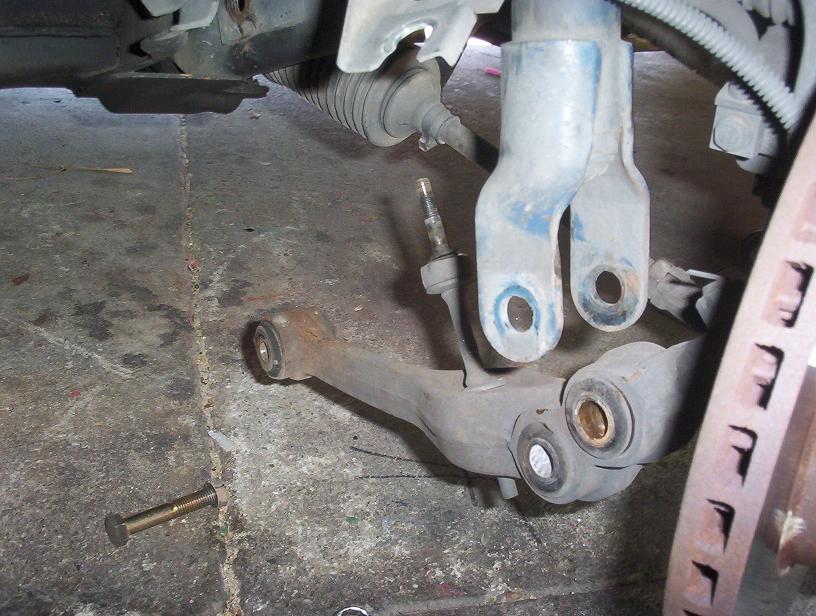 To get the existing arm out I had to undo the bottom of the srtut, where the torsion bar attaches to the control arm and where the control arm attaches to the chassis.