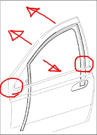 Attached picture shows where the door bends marked in red circles. Which is a very common problem on almost ALL cars and one of the reasons for the wind noise in the cabin and in worst cases rain/dust leaking in. To fix this problem: Open the door. Pull down the window totally. Bend the window frame by using your knee to push the door out(from the car), while pulling the upper part of the window frame in with your handsin towards the car body. Pull your window up and see if you notice any difference. Don not pull too hard. You may need to do this adjustment a couple of times or more until you get the right “BEND†to the window frame. That is when you can pull the window up and down easily. If this fails, try the other remedies suggested above.