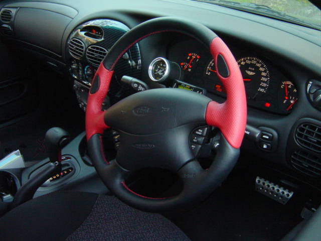 Firstly: I'd want to convert it to full Black Interior Carpet You can change your carpet to black, for around $150-200. Any proper trimming/carpet place can do it for you. Dash You have 2 options, paint your dash black, or get it professionally painted. Lot of hassle, can be done. Or you could find a AUI XR Black Dash. Only problem with this is that they are rare as hell, and even rarer to be wrecked, to find as a part. Then I'd get a Carbon Fibre Center piece to make it slightly darker and more sportier. Door Trims AUII-III Black Door trims will fit on to your AUI Doors. I sold my Black AUIII Forte Door trims for $220 to an AUI Owner. You could get your door trims painted, i got my TL50 door trims repainted professionally and trimmed, as they were slightly faded. Painting is about $50-100/door. Otherwise you can do it yourself. Seats Find some wrecked seats, or find someone who is selling a set. If this guy decides to sell his AUIII XR Cloth seats to me, i will have my AUIII Falcon Forte Seats for sale, I'll sell mine for about $350. Then you have the rest of the stuff to do: Black Momo Wheel Momo Gear Knob Chrome Door Handles On the other hand you can still keep your Grey interior and make it look ok, but it'll never look as good as a Black interior, but that's just my opinion. Your looking at at least $1000-2000 to change to black interior, but then you can sell some of your stuff, and recoup some of the costs. Then on top of that another $1000 for fancy stuff (i.e. Momo Gear, some leather, Tickford Dash, Headunit etc). I already have a black interior, and have probably spent over that on my interior. Heres some pics of my interior, to show you door trims can look good: http://i13.photobucket.com/albums/a267/ ... G_2354.jpg http://i13.photobucket.com/albums/a267/ ... G_2356.jpg http://i13.photobucket.com/albums/a267/ ... G_2362.jpg http://i13.photobucket.com/albums/a267/ ... C01221.jpg Heres a picture of a AUI with a CF Center piece: