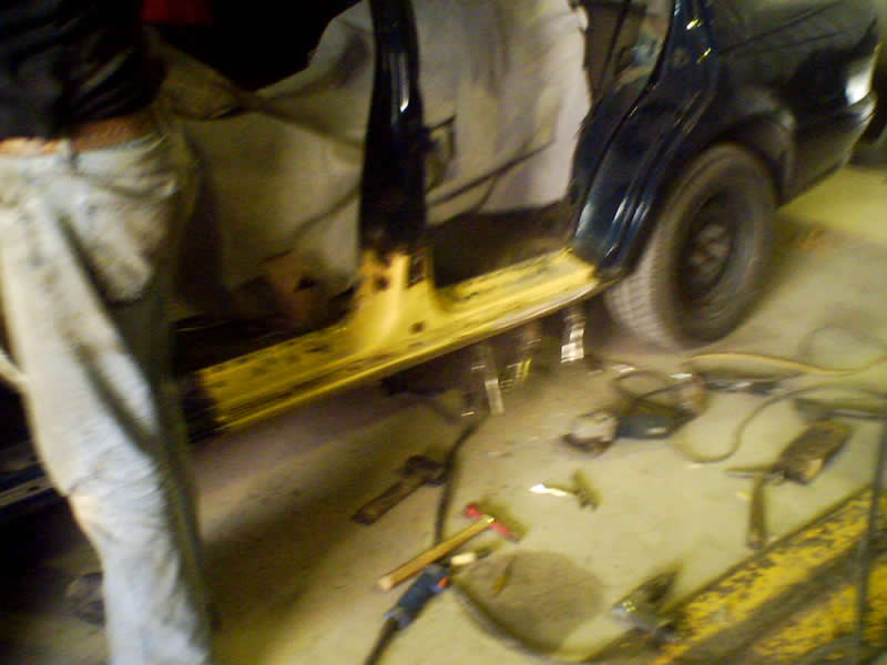 the new sill/b-piller is in he was welding the last bit on when i got there, he has added extra steel re-enforcments to the sill, so i wont get any body flex.