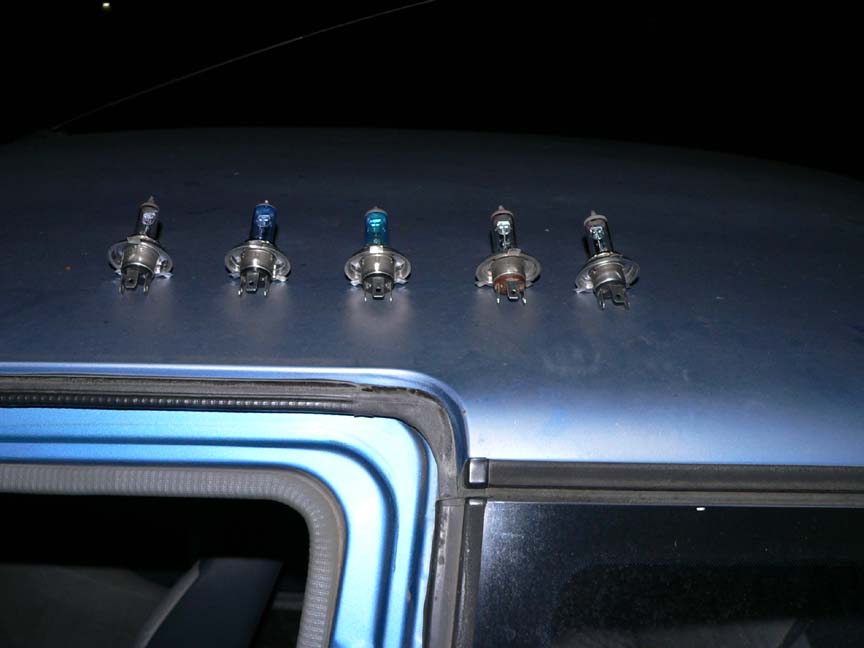 just teated a few H4 globes i had floating around. i used my passenger side light on high beam on my 90' swift. this is the results. all where 55/60w except the trifa which was 55/100w