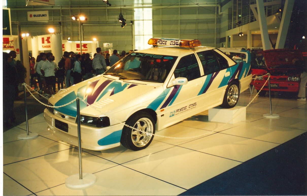Well actually the kit was available a fair while back as I had the option to have it fitted to my EBXR8 (- was one of the first in Canberra,) I saw the kit first on the EAGT prototype - and yes that wing was timber and the engine bay was still red! - the local ford dealership had it for a promo thing and my mate was an auto electrician at the time. The kit was also fitted to the first XR8 that anybody bothered modifying back in '91, for those who remember the pearl white ppg indy pace car that ford built pre-tickford days, the kit was available through APV and probably made by phase autos in Melbourne (who later did the Moffat ED) anyway I ended going with the GS kit (now known as the MMM) as it was the best on the market, a year later came the EBGT which looks mighty fine also. Excuse the pics as they are scans from pre-digi cam days.