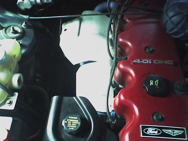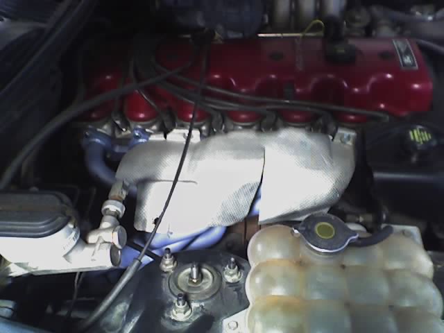 Looks more like frd_xr has set his up to stop the heat getting up into the brake booster. And as for keeping it looking neat... you can still see the top of your extractors :P