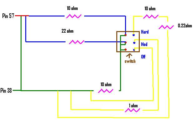 (PIN 57) 12 volt pin spliced to to 18 ohm to HARD ()- and