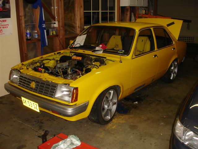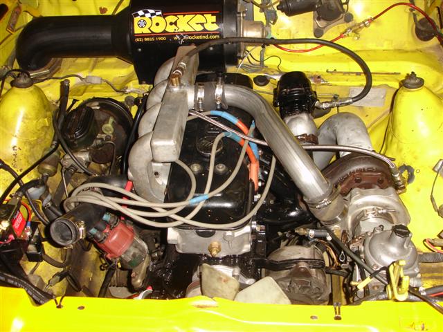 story is a mate of mine rang me up asking if i could give him a hand and we ended up doing it in my garage as he has no idea at all, lol. He got the car for the pricely some of $600, thru some rego on it for another $600 then bought the complete engine with turbo and all the bits complete for a steal at $550. add in the few bits and pieces we have had to buy to tidy up the conversion so far and all up he is still under $2000. not bad bang for your buck. the motor is a g200 2lt single OHC isuzu motor, running a decompression plate and has had the head opened up a bit and the bottom end was freshened up about 5000k's before it came out of the doner car. it is fed by a CD175 stromberg carby and the turbo is a mystery, no marking's on it at all, it is only smallish though as you can see in the photos. i will update when we have it running properly and get it to WSID and down the quater. it currently runs and idles nice but we need an exhaust and radiator before we can test drive it, cant wait. cheers Rob.