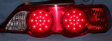 The brake lights, have 40 LEDs, that all light up, and all light up dim for parkers. Indicators has 30, and reverse have 10. (all per side numbers) If you could remove the fluted lens and replace it with a plain one (that is if your Brake/Park are Red LEDs, your Indicators are Amber and your reverse White. The LED effect would be far more visible. Don't take me wrong, I like what you have done. It look very nice. I am all for LEDs. However, the problem with fluted lenses are that through them you can't always see all the LEDs perfectly. How about turning the spoiler LED as parkers as well as Brake lights??? Would look awesome. A complete LED rear end. That is a sight to see.