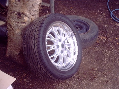 Brand new Rims, 98% tread tyres. 17x7.5. Tyres are 235/45/17 Dunlop Sp3000's and have done 15 kilometeres (not 15 thousand either). Great looking set of wheels silver in the middle with chrome lip. Yes they are originals 3 piece hand made rims. $1200.