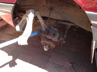 WTF WHERE THE WHEEL GOING!!!!!!!! WTF are these shocks SUPER ULTRA ULTRA LOWS LOL started to pannic but then the car stop going down LOL tell ya what she looks hell of alot better with Dobinson Super Lows and monro GT shocks. ALL i got to do is get all new bushes for the control arms sway bar etc and ill do them next week. To bad i can't put my mags on for a wheel LOL Cure them huge hubs on the front rotors