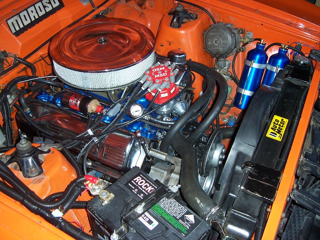 76XBGS, 383c, custom crow cam, 4V p&p heads, Isky SS Valve+springs, extractors, 2.5"twins, MSD Ignition, Edelbrock intake, Forged bottom end, Barry Grant 750DP, thermo, discs, toploader, Holley fuel pump, SUPERCHARGED!