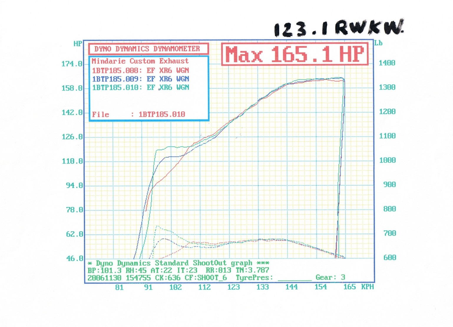 EF XR6 Wagon,RPD R6 cam,Wildcat extractors, Magnaflow cat,2.5" Lukey exhhaust.