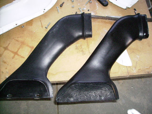 no real benifit but when i brought the snorkle and had a look at it i would of thought that it would be open right threw it instead of have the two tubes running inside it.so i made the mould with the tubes taken out so it is wide open with no restrictions in side.will it make a deference to performance "NO" but i can make these things so i thought why not.Also i wanted it to match the finish of the airbox lids i make as the fibreglass lid with the plastic snorkle next to it didn't look right.