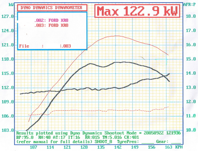 Blimey, thats alright. A stock series 1 AU XR8 auto is lucky to crack 140rwkw. 130 is s a pretty good start. Imagine what a little strategic porting will achieve combined with you current mods