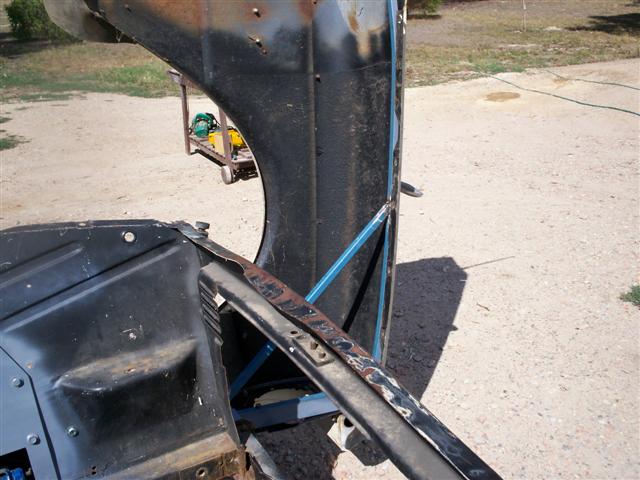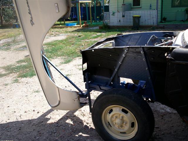 this allows for f/end to lifted into position with relative ease u will also notice bracing 1"sq tube 2.54m thick