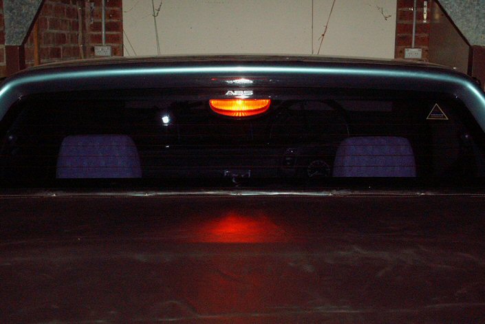 Snap - Where would the best place to run a brake wire to exterior of the car be for an external high mount stop light? Was thinking of following the way you have done but put it through the rear wall behind the carpet and then up through the dus deflector/spoiler thingy.