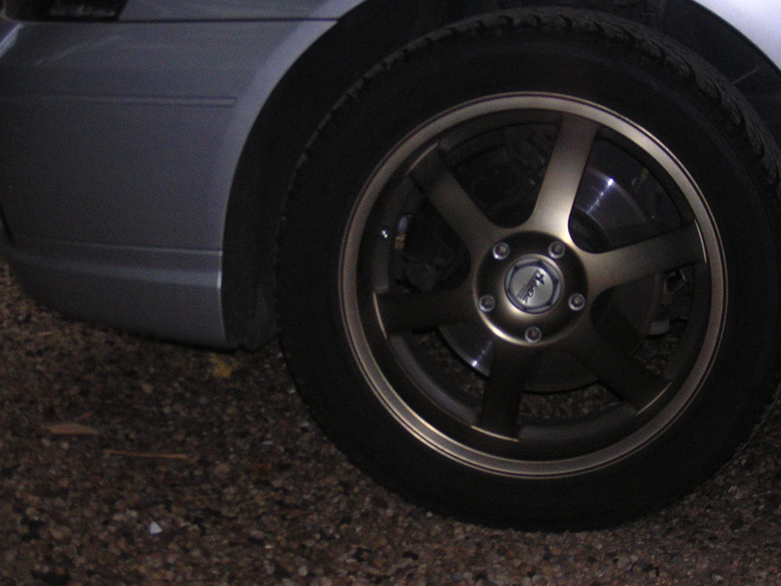 got these for sale in excelent condition. no gutter rash or scratches. tyres are nexen 235/45/17 with 80-90% tread. also come with slimline wheel nuts as needed. they are lightweight anodised rims and were very expensive new. they are a shiney bronze finish and look extreemly tuff.