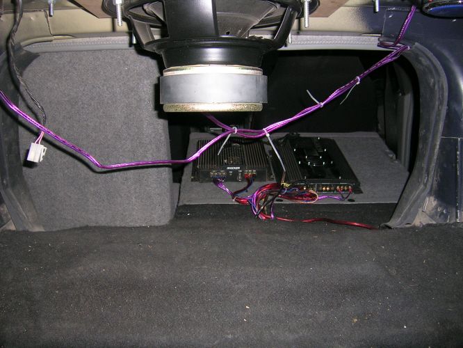 This is the best pic I could dig up. Amp wiring is a little embarressing in this pic