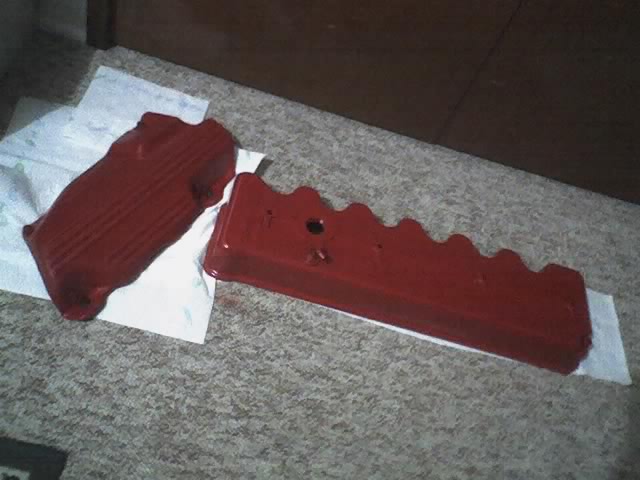 i painted my exhaust manifold heat sheild and tappet/rocker cover "bright red" with 400degree brake caliper paint i had to paint it