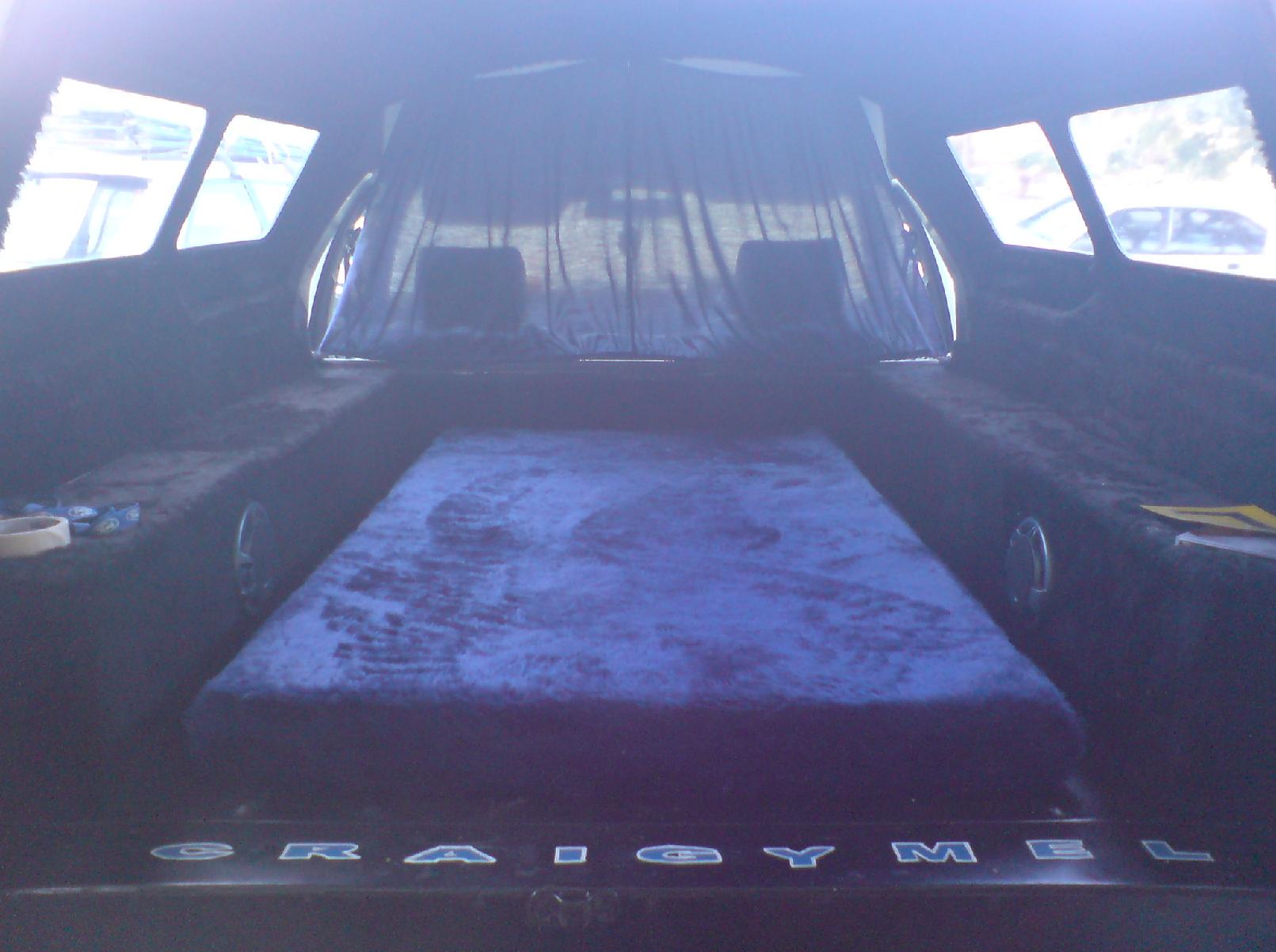 UPDATE: almost done , curtains are getting done as i post this and then jsut have to mount the 12 inch sub behind the seats moutned flush facing the back doors!