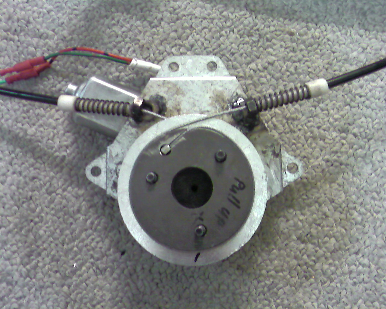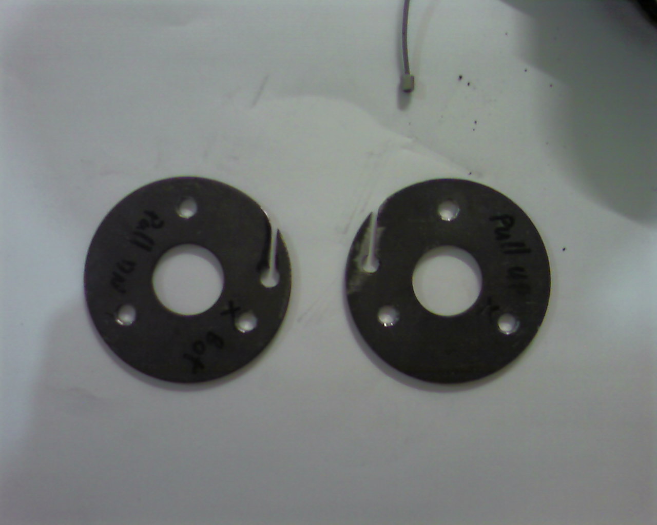 All thats left to do is cut a cd spindle protector down to size to get the cable gap correct between the larger silver washers (the black washers are slightly too thick), and grind the pulleys slightly spiral so the cable doesn't overlap over a bump after one complete turn.