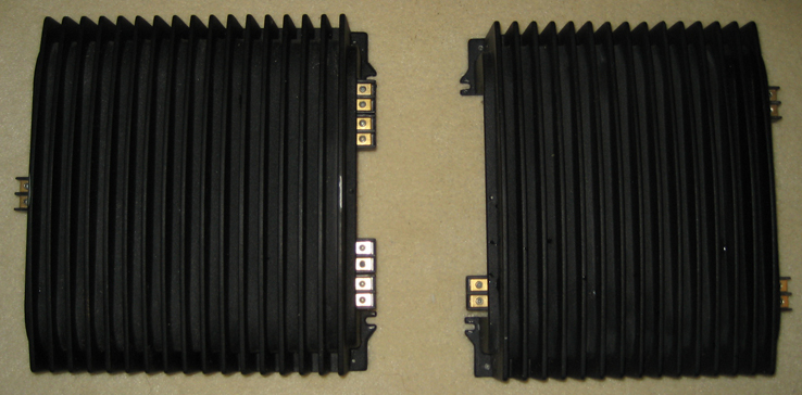 they are supposed to have domed covers over the ends that have "rockford fosgate" labeled in red. they end up looking like this (__) rather than just a square heat sink.