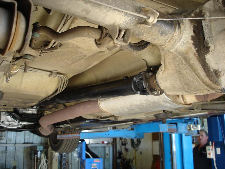 She's got a one-piece Mal Wood Tailshaft ...all pointing to a uni joint at the moment.