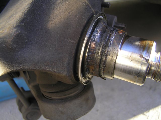 For posterity, I thought I would write a brief bit on how I did it in case someone else comes to the same screeching halts as I came to. Here is what I did and if there are any glaring errors, please correct me sooner rather than later. ( before the wheels fall off so to speak) Remove the road wheel and dust deflector if there is one. Twist the brake line so that it comes out of the retainer bracket under the top caliper bolt. This allows access to the bolt. The plastic clip has flats on the inside of it and when twisted the right way, will slide out of the bracket. Remove the caliper bolts (15mm socket) and tie the caliper up to one of the top suspension arms so that it doesn't stress the brake line. I used cat 5 cable, but string, coat hanger whatever is to hand would do. Remove the disc. Gently remove the dust cover from the centre of the hub ( I will have to purchase 2 more of these as I wasn't too gentle. maybe not a bad idea if you are getting hubs anyway to purchase a pair). They are rubberised steel, so something sharp right at the rear and work your way around it. Using a largish breaker bar ( I used around 350mm) and a 35mm socket, undo the nut device from the stub axle. Slide the hub off the stub axle. One of mine was jammed onto the stub axle and I had to gently persuade it to come of by tapping it with a cold chisel and hammer. This removed the hub but left the rear seal shell and left the inner race firmly stuck to the stub for more attention from a cold chisel. I cleaned the thread and stub gently with a wire brush and gave them a spray with Brake Clean and let them dry. I also cleaned the caliper bolts the same way. Slide the new hub onto the stub. I then put some Loctite 262 onto the thread and put the nut device back on. I torqued it to around 120Nm or 90 Ft-Lb with a tension wrench. I arrived at this figure after talking to several mates, one who has done this before (I should have asked him first right?) Put the dust cover back on, brake disc on and refit the caliper. I fitted the bottom caliper bolt first loosely and then applied some Loctite to the top bolt and fitted it, I then removed the bottom bolt and Loctited it and torqued them both. I didn't have the torque specs for these so I just used a best guess (tight enough). I found that fitting one wheel nut to the bottom stud helped the fitting of all this by stopping the disc from moving. Remove the bottom wheel nut and fit the dust deflector and road wheel., tighten the wheel nuts up. I actually lubricated the threads here too. The things I found interesting were: The bearings are ball bearings not roller. The nut device looks like 3x 4 mm thick nuts in a sheet metal cage with a thick washer on the back. The most likely cause of the original noise was the rusty water and bearing damage in the LHS hub. When I fitted the LHS hub, it didn't align easily and jammed on the stub axle. I had to get a small drift in behind the bearing to tap the inner bearing shell to get the hub off before checking the shaft, realigning the hub and finally fitting it. There looked to be some bash marks on the shaft which I guess were from original assembly, which is a little surprising to give every ford assembler a big hammer in the event that something doesn't fit. What I guess happened was that the hub was incorrectly fitted in the factory as well and the fitter has just reefed at the hub assembly and buggered the inner seal. /CSI hat off I will have a crack at attaching some photos of the nut assembly as this is the bit that had me stumped. Thanks everyone for your input. |