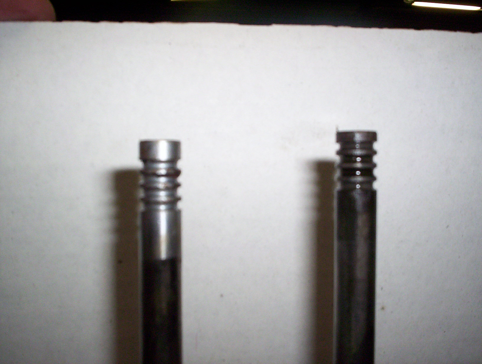 ill be darn lol the stem on the valve to thick? is what what you mean? they same lenght? they have 1 or 2 groves for the valve locks? one aint it? are they any larger? if so how much by?
