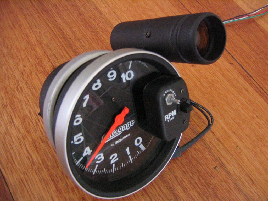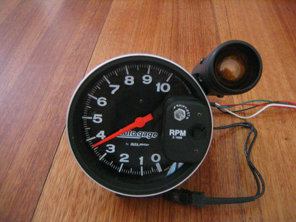 Also for sale i have a Autometer Autogage 5" Monster Tacho with external shift light and cover. Unit works fine and goes up to 10,000rpm and you can adjust it to what maxRPM youshift at then the shift light comes on. It comes with about a metre of extra connected wiring to run to your battery,headlights etc. comes with all brackets and mounting plate. New these are $230 off ebay.