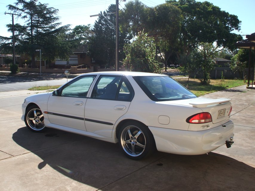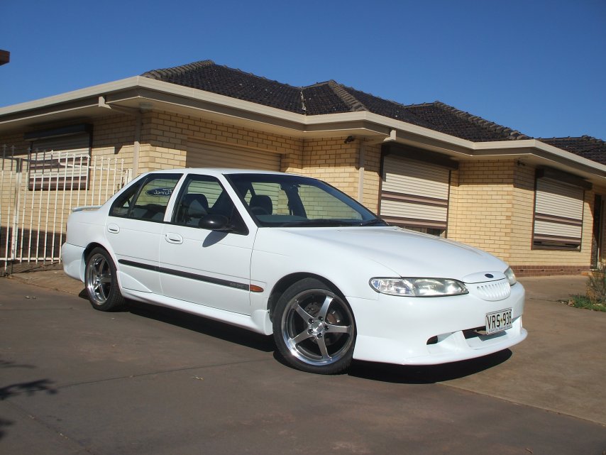 I was going to have the front bar without the GT grille look alike thing, but then the car would of looked very VR/ VS Clubsportish.. But when I first saw the complete bar as is, I liked it, so I went ahead with it. I get alot of young 'homies' in there Commodores eyeing me off... hahaha, then it's funny, because next thing they end up seeing is the rear windsheild and my Ford sticker getting smaller and smaller.