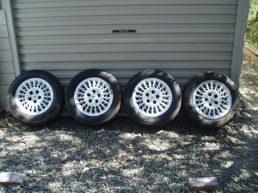 They are the original 15x7" Alloys. Good condition (just dirty from sitting for around 5 years). Tyres are average, will get you around for a little bit, but new ones needed soon. Existing tyres a 215/60/15 Yokohama A529 (were a great tyre). $100 pickup PM me for a phone no. Cheers Lee