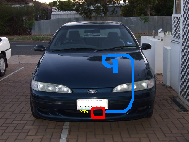 a thought..why dont yopu have like a pipe that runs to the grill area of the car at the lower and of the bumper and have the pod ther? liek a cheap cooler? lol