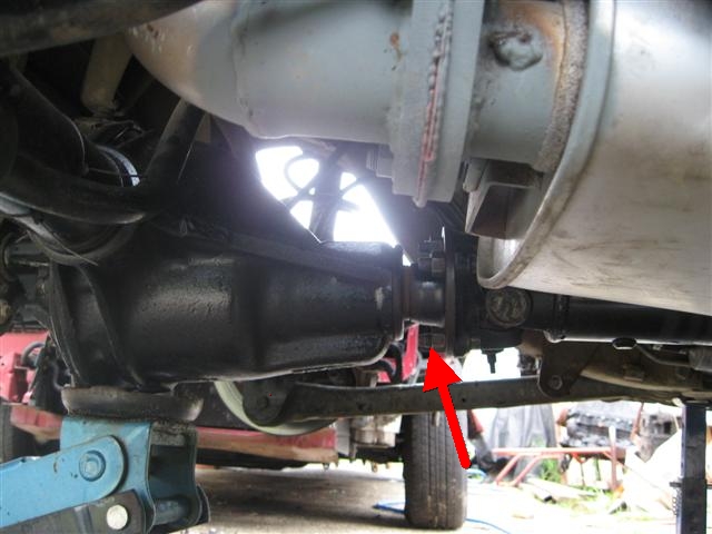 After fitting the front bolts of both EL arms to the body, the pinion was lowered by placing the floor jack under the Watts link and gently raising that until the rear bolt holes aligned.
