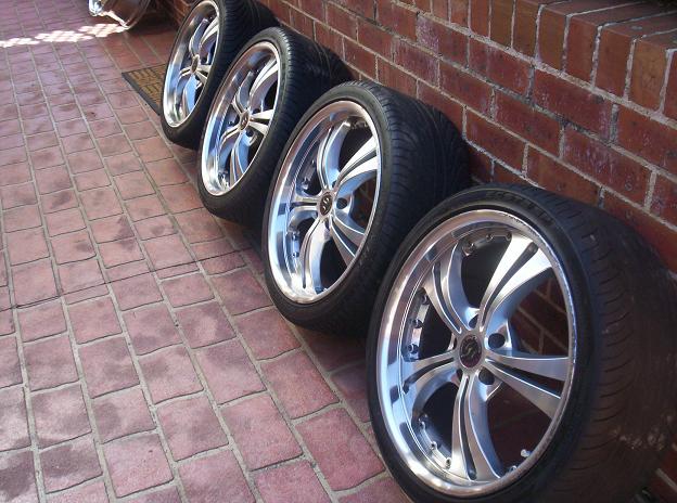 pics are in my gallery.. the ones dated before 08.. one tyre bald.. two good.. and one good but worn on inner edge.. a fair bit of gutter scratches but as you can see.. it doesnt affes=ct the look much.. they still lokk great.. any idea's price wise?? ball park figure's?