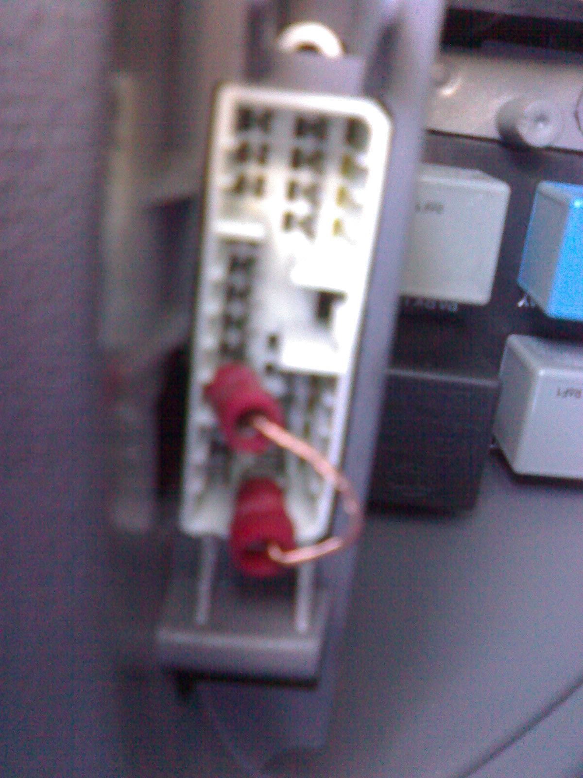 The pic is sideways......... the wire is attatched to the 4th top pin from the left and the 1st bottom left pin