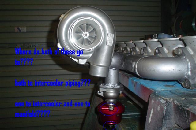 bottom fitting on the waste gate to turbo ,or intercooler piping before the t/b